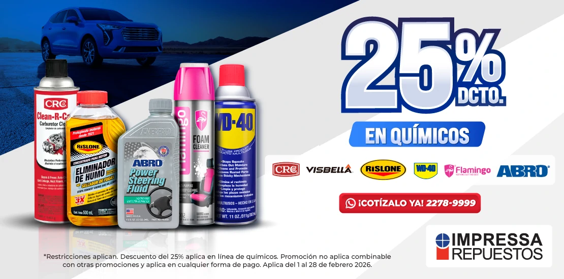 *Restricciones aplican. Descuento del 25% aplica en línea de químicos. Promoción no aplica combinable con otras promociones y aplica en cualquier forma de pago. Aplica del 1 al 28 de febrero 2026.