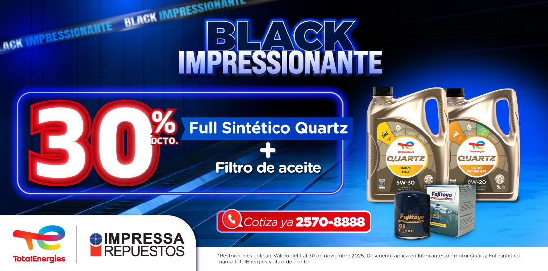 *Restricciones aplican. Descuento aplican en lubricantes de motor Quartz Full Sintético marca TotalEnergies y filtro de aceite. Vigencia del 1 al 30 de Noviembre 2025. Aplica en cualquier forma de pago, no aplica para venta de empresas y gobierno.